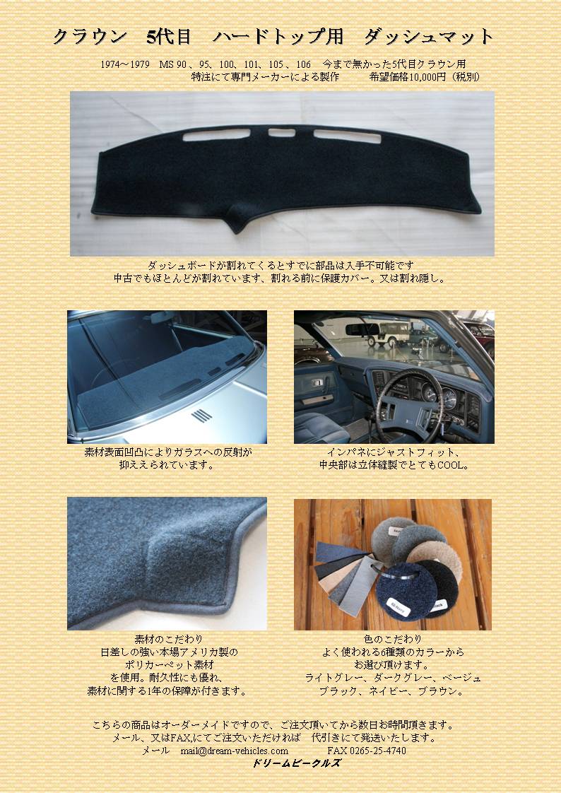 5代目 クラウン105等 ハードトップ用 ダッシュマット